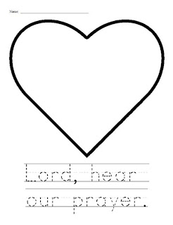 Lord, hear our prayer activity sheet (for younger students)- Have the students trace the letters. Inside the heart the students will draw the needs they see around us in our community or their own personal desires.