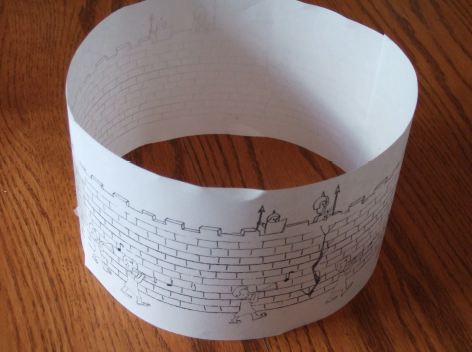 Preparation: Print out black and white pages of web.archive.org-The Walls of Jericho (page 2) for the children to color or print out the color version on page 3 and cut out. Make into a 3D model and put in the center of the game board (you might have to tape the two pieces together smaller so it can fit inside the game board). You can make the 3D model in a circle or in a rectangle, which ever you prefer.
